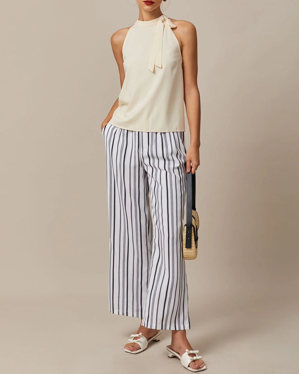 Monsel Tie Front Top In White With Faded Denim Binding 1585